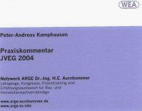 PRAXISKOMMENTAR JVEG 2004 (Autor: P.-A. Kamphausen): DERZEIT NUR VORBESTELLUNGEN DER 2. AUFLAGE bei der Geschäftstelle möglich. Normalpreis: vorauss. 19,80 EUR Sonderpreis für Kollegen im WEA-Netzwerk der ARGE Dr. Aurnhammer und Mitglieder des VBD: 12,50 EUR jeweils zzgl. Versandkosten (2,50 EUR) und MWSt.